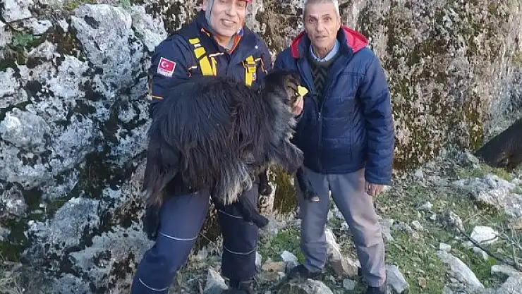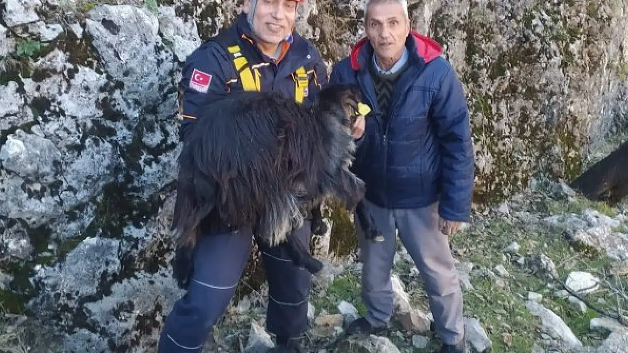 Uçurumda mahsur kalan keçiyi AFAD kurtardı