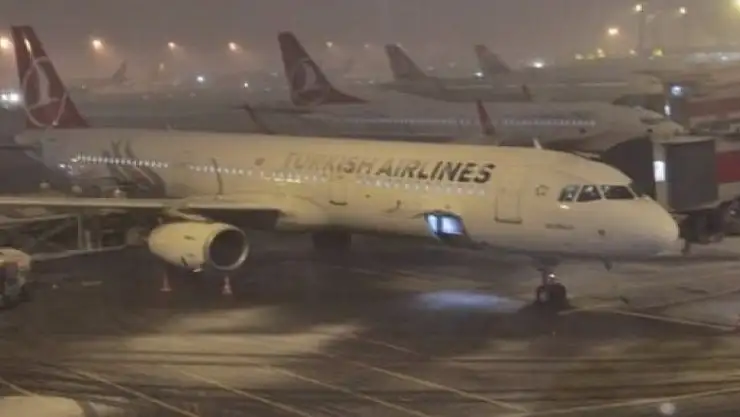 İstanbul' da etkili olan kar yağışı ve şiddetli rüzgar nedeniyle seferlerde aksamalar oldu. İstanbul Havalimanı'ndan yapılması planlanan THY'nin, Bakü, Aşkabat ile İzmir ve Adana seferleri iptal edildi.