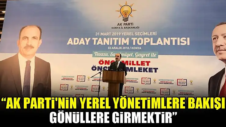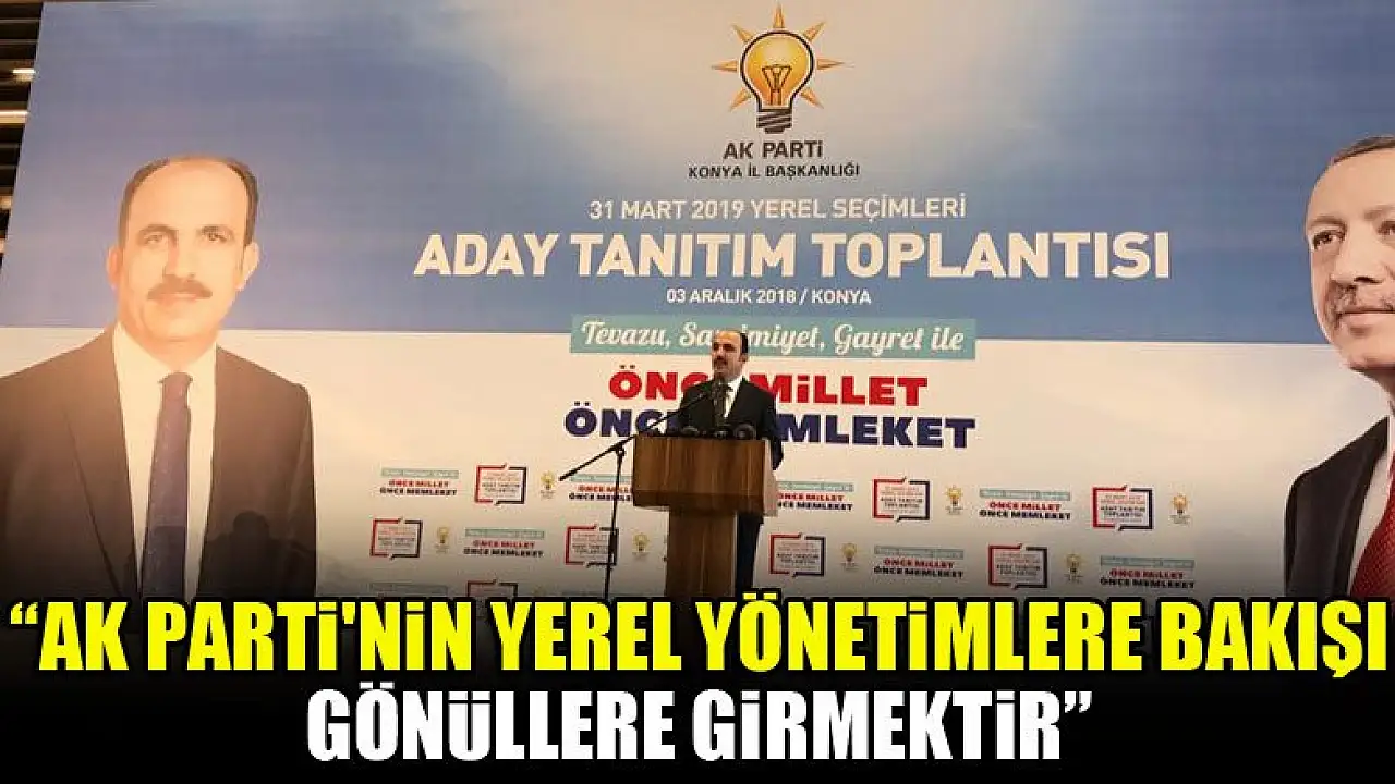 Ak Parti Konya Büyükşehir Belediye Başkan Adayı Tanıtım Toplantısı gerçekleştirildi. Toplantıda konuşan Konya Büyükşehir Belediye Başkanı Uğur İbrahim Altay, 'Ak Parti'nin yerel yönetimlere bakışı gönüllere girmektir' dedi.