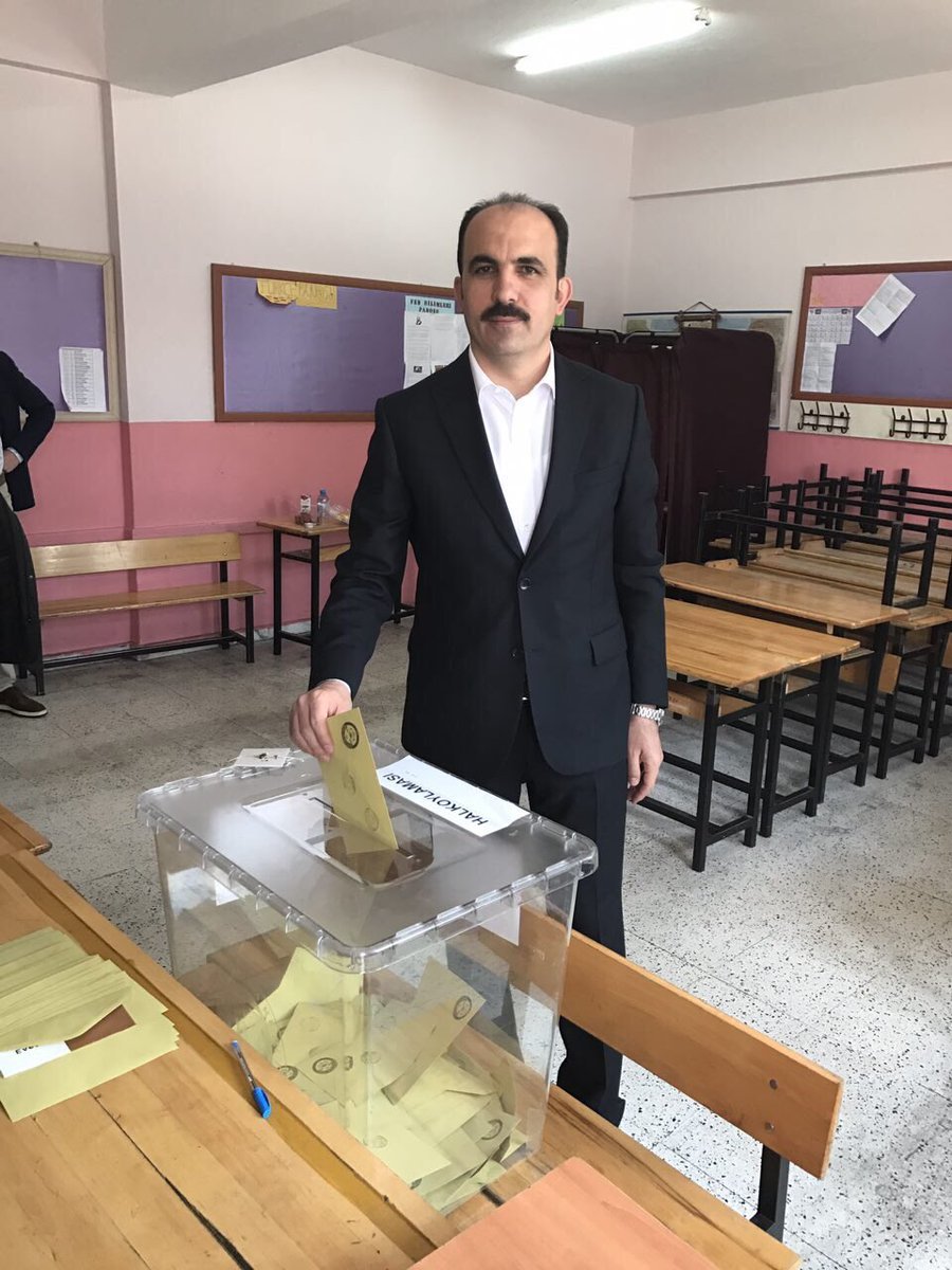 Sabah saatlerinde oy kullanacağı okula gelen Başkan Altay, oy kullanacağı sandığın yer aldığı sınıfa geçti