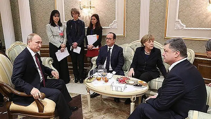 Rusya Devlet Başkanı Vladimir Putin, Almanya Başbakanı Angela Merkel, Ukrayna Devlet Başkanı Petro Poroşenko ve Fransa Cumhurbaşkanı François Hollande'ın Ukrayna krizini görüşmek üzere dün akşam Minsk'te başladıkları toplantı yaklaşık 14 saat sürmüştü.