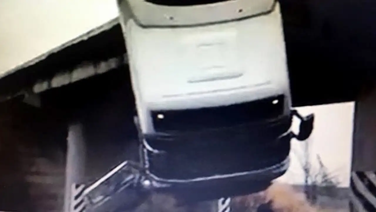 Ukrayna’nın Mariupol-Volnovakha otoyolunda hızla seyrederken freni boşalan kamyon önce bariyerlere çarptı, daha sonra da köprüde asılı kaldı.
