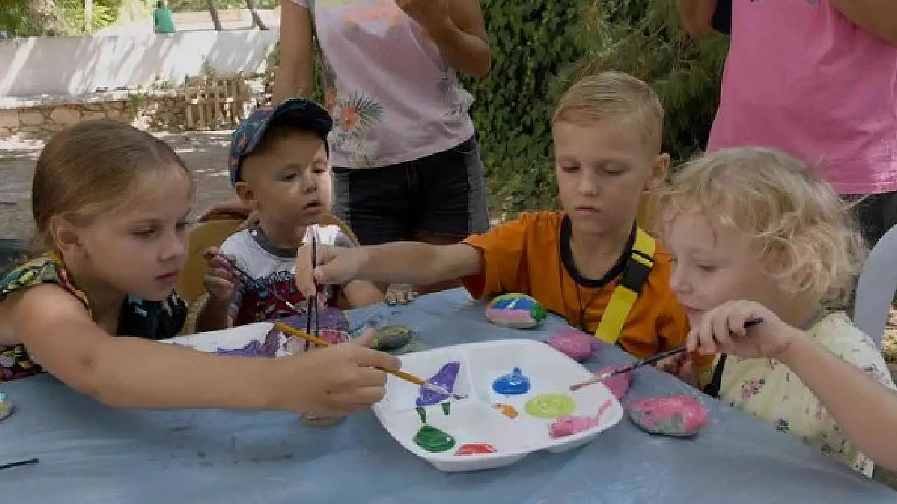 Aydın'ın Kuşadası ilçesinde, Rusya'nın Ukrayna'ya düzenlediği askeri harekat nedeniyle geçtiğimiz Mart ayında ilçeye sığınan Ukraynalı savaş mağduru çocuklar için taş boyama etkinliği düzenlendi.