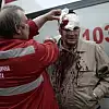 Yürüyüş devam ederken, işgal altındaki yönetim binasından en az 100 Rusya yanlısı üniformalı, maskeli ve eli sopalı kişi göstericilerin yoluna çıktı. Kısa süre sonra başlayan karışıklıkta çok sayıda kişi başlarından aldıkları sopa darbeleriyle yaraladı.