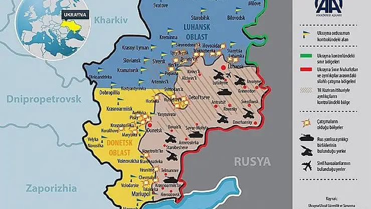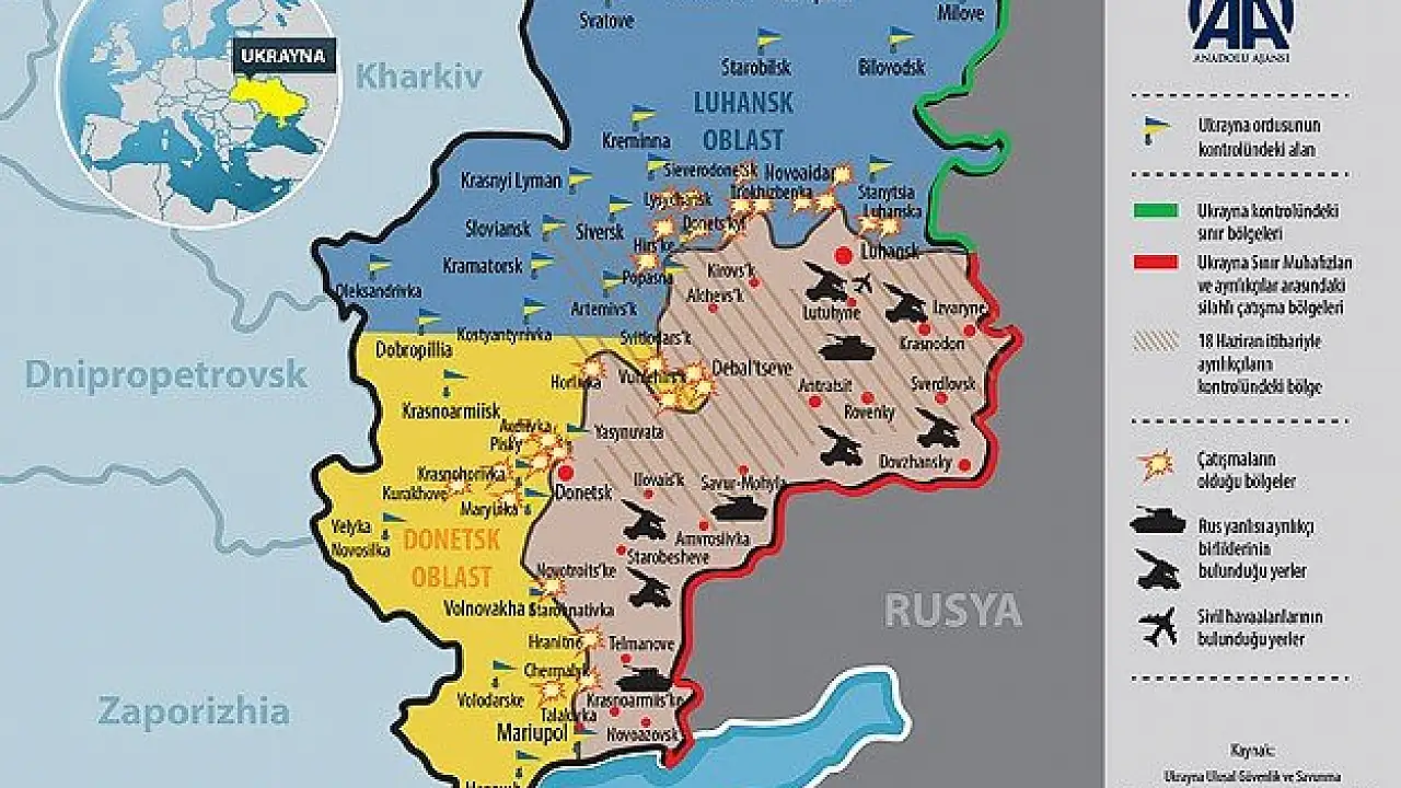 2013 yılının kasım ayında Kiev'deki gösterilerle ateşlenen kriz fitilini, yaklaşık bir buçuk yıldır kimse söndüremiyor. Ukrayna, Donetsk ve Lugansk'ın tamamına yakınını kontrol eden ayrılıkçıların Rusya tarafından desteklendiğini ileri sürüyor. Ayrılıkçılar, Donetsk ve Lugansk'a "özel statü" verilmesini bölgelerini kendileri yönetmek istiyor.