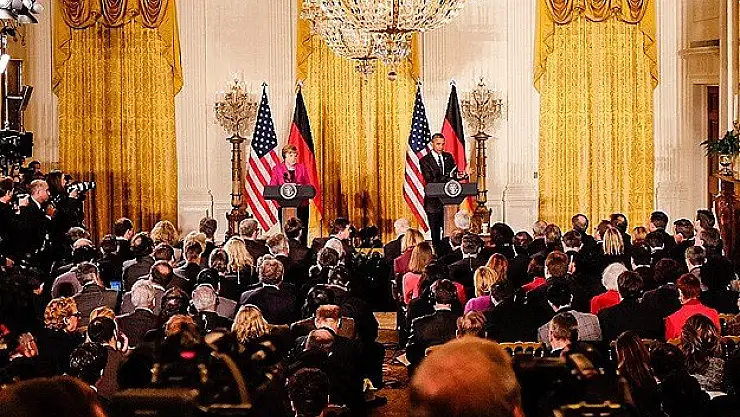 ABD Başkanı Barack ile Almanya Başbakanı Angela Merkel Beyaz Saray'da yaptıkları görüşmenin ardından ortak basın toplantısı düzenledi.
