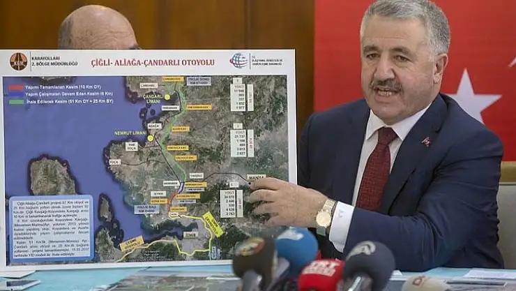 Projeyi çok önemsediklerini dile getiren Arslan, "Menemen'den Aliağa'ya, oradan da Çandarlı Limanı'na gidecek ve daha da önemlisi ihale kararını aldığımız 18 Mart'ta temelini atacağımız Çanakkale Köprüsünün de koridor tamamlayıcısı olarak hem İzmir trafiğini rahatlatacak hem de Çanakkale ile birlikte Ege'deki yük hareketini ülkemizin kuzeyine, Trakya'ya oradan da Avrupa'ya gönderebilecek önemli bir koridorun tamamlayıcısı." diye konuştu.
