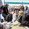 Suriye'deki iç savaştan kaçarak Türkiye'ye sığınan bir grup Suriyeli, ülkelerine dönmek için Akçakale Sınır Kapısı önünde toplandı.
