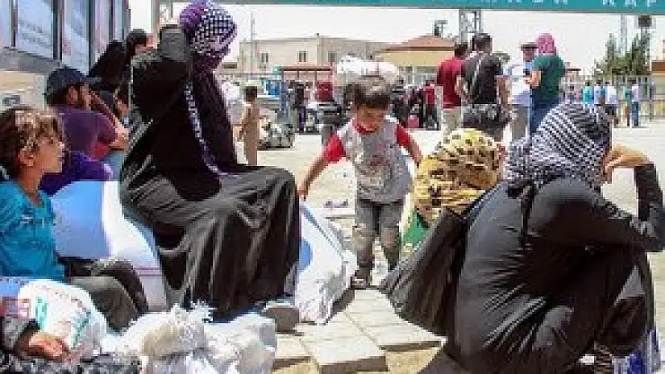 Beraberlerinde getirdikleri eşyayla bekleyen Suriyeliler, geçiş için gerekli izinlerin verilmesiyle ülkelerine dönecek.