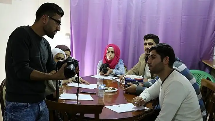 Hatay'daki Suriye Kültür ve İnsani Yardım Derneği tarafından düzenlenen kursta temel gazetecilik bilgilerinin yanı sıra fotoğrafçılık ve kameramanlık eğitimi alan 13 Suriyeli genç, ülkelerine dönüp vatandaşlarının gözü kulağı olmak için çaba gösteriyor.