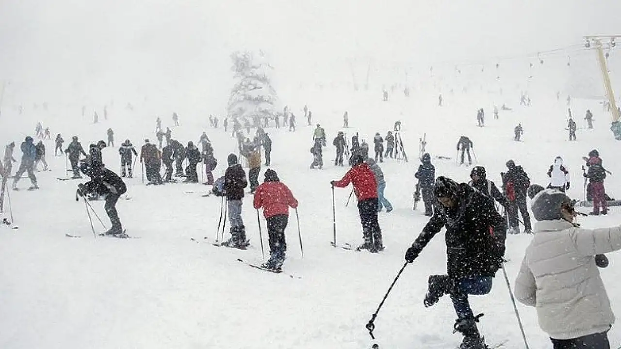 Günübirlik ziyaretçilerin de katılmasıyla hareketliliğin yaşandığı Oteller Bölgesi'nde, yerli ve yabancı tatilciler kayak ve snowboard yapıp kar topu oynayarak eğleniyor.