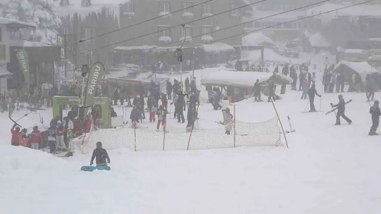 Bu yıl kar yağışının yoğun geçmesiyle kar kalınlığının 2 metreye yaklaştığı Uludağ'da sezon olağanca hızıyla devam ediyor. Hafta sonu Uludağ çok sayıda yerli ve yabancı turisti ağırladı. Hava sıcaklığının eksi 13 derece olarak ölçüldüğü merkezde misafirler yoğun tipi ve sise rağmen pistleri doldurdu.