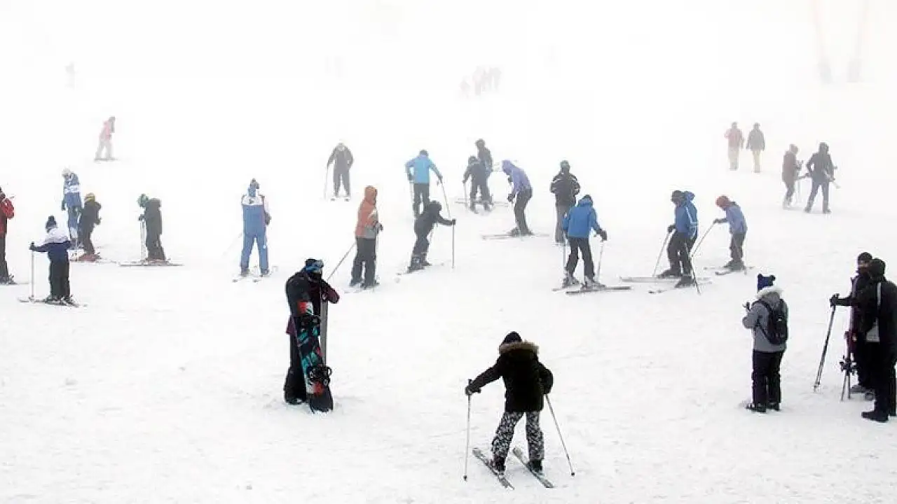 Türkiye'nin kış turizm merkezlerinden Uludağ'da yoğun sise rağmen pistler doldu.