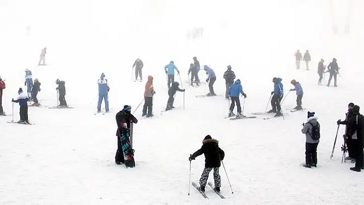 Yoğun sise rağmen yerli ve yabancı turistler, pistleri doldurarak kayak keyfi yaşadı.
