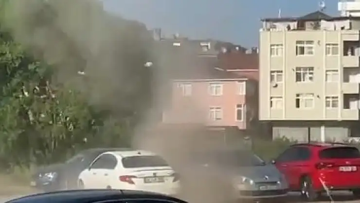Ümraniye'de saat 17.00 sıralarında bir anda yol kenarında hortum çıktı. Araçlar arasında çıkan hortum caddeden geçenler arasında paniğe neden oldu.