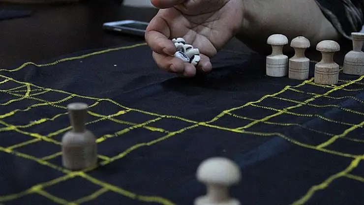 Kumaş üzerine dikilen karelere yerleştirilen taşların, rakip oyuncu tarafından çıkarılması amaçlanan oyunda, zar yerine deniz kabuklarından yapılmış boncuklar kullanılıyor.