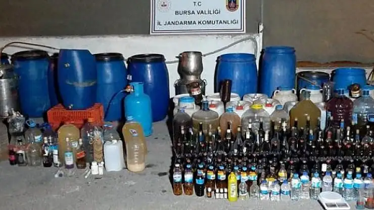 Bursa'nın Orhaneli ilçesinde de bir eve düzenlenen operasyonda, 1406 litre sahte içki ele geçirildi.