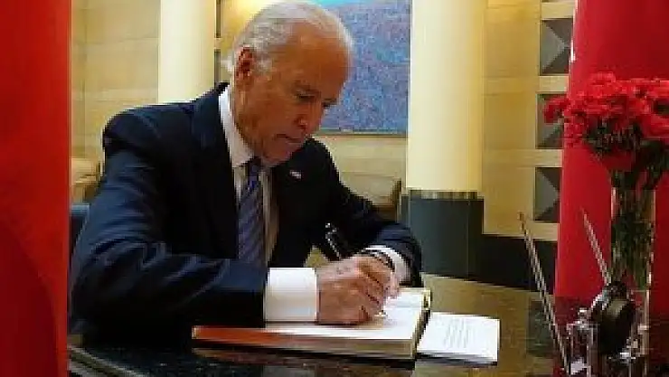 Turkish Ambassador Serdar Kilic welcomed Biden, who signed a guest book to commemorate the victims of the attack.