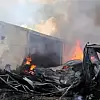 Fabrikanın arka bölümdeki çatı kısmına ise beton mikserleriyle su atıldı.
