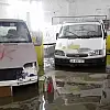 Uşak'ta akşam saatlerinde etkili olan sağanak yağmur sonrasında iş yerlerini su basarken bazı araçlar da yolda kaldı.