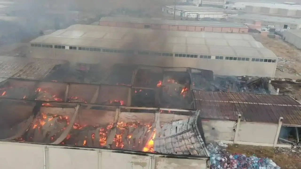 Uşak'taki depo yangını 12 saattir devam ediyor