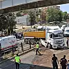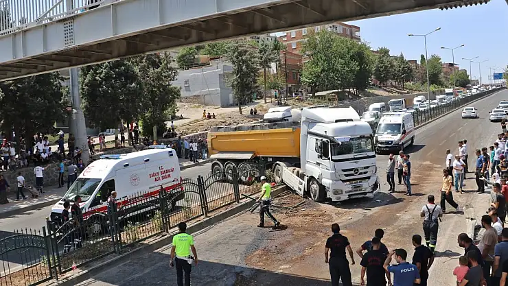 DİYARBAKIR'da, sürücüsünün üst geçidi kullanmayan yayalara çarpmamak için manevra yaptığı kamyon, refüjdeki korkuluklara çarptı.