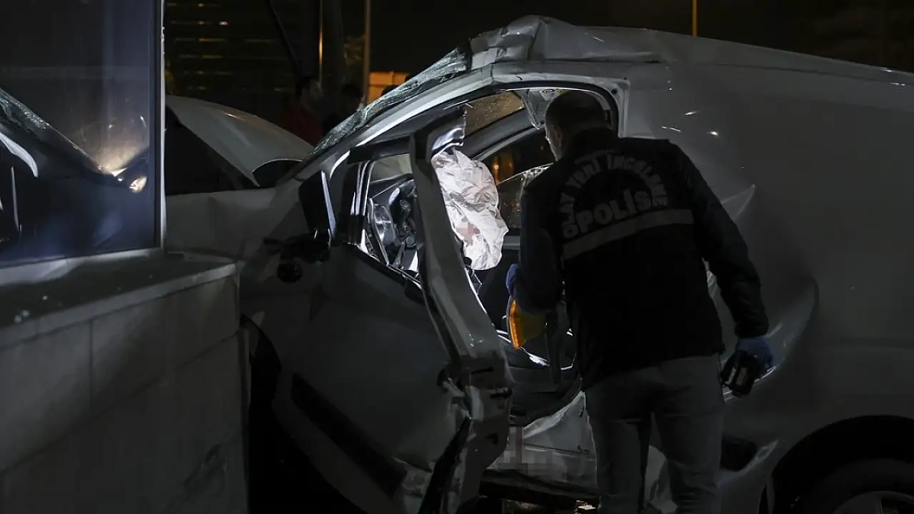 Hafif ticari aracın üst geçit ayağına çarpması sonucu 2 kişi hayatını kaybetti, 1 kişi ağır yaralandı.