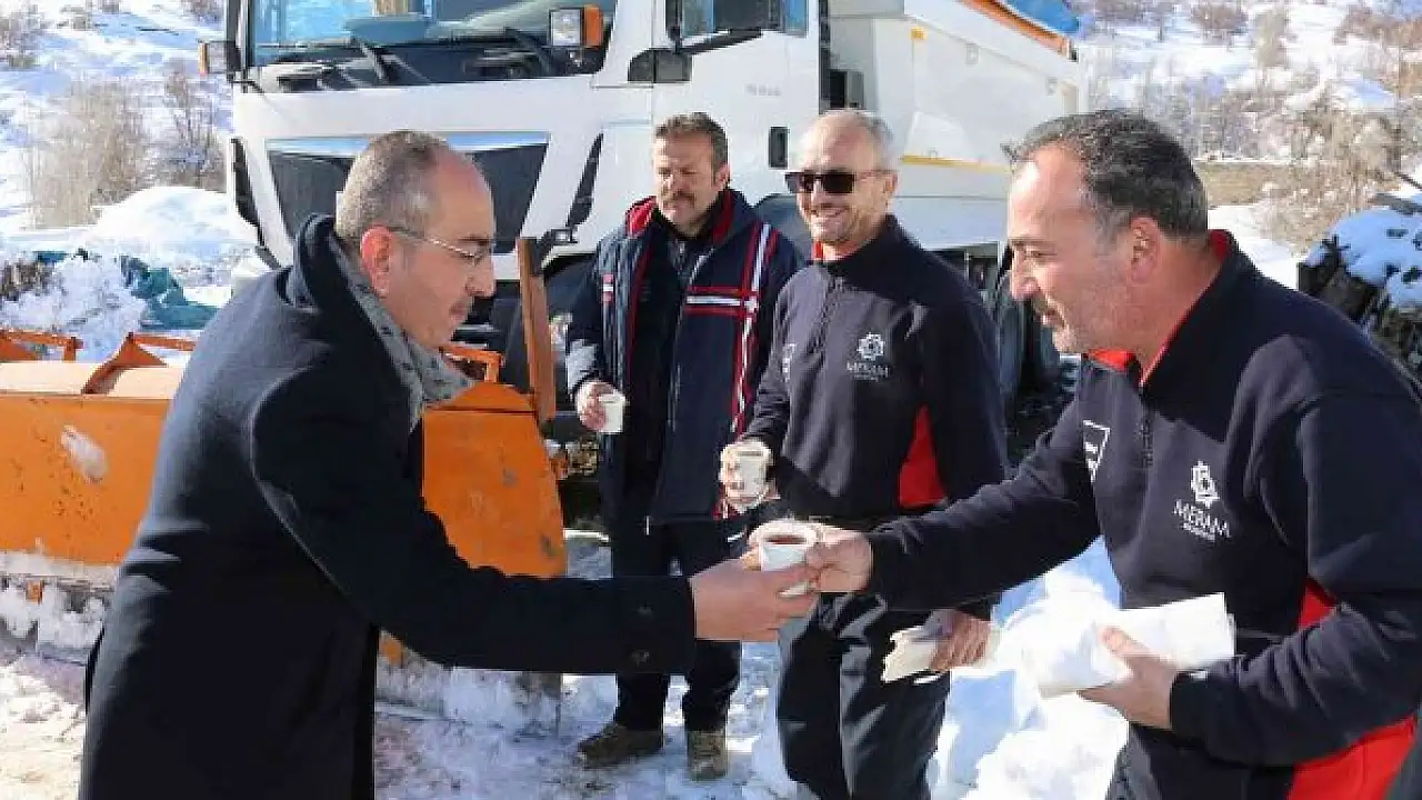 Usta ve Kavuş'tan kar ekiplerine sıcak çay ikramı