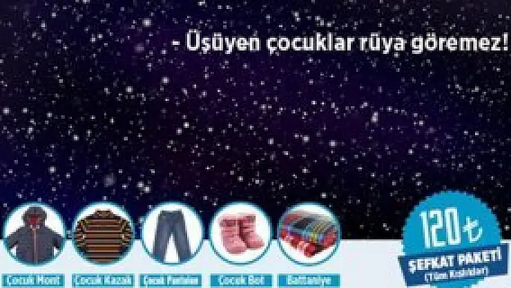 Öte yandan bağış tutarları şöyle: “Çocuk Mont: 30 TL, Çocuk Kazak: 15 TL, Çocuk Pantolon: 15 TL, Çocuk Bot: 30 TL, Battaniye: 30 TL, Tüm Kışlıklar : 120 TL.”