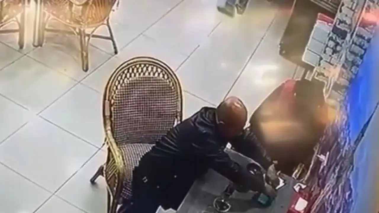 masa üzerindeki telefonunu çaldı. Şüpheli, telefonu çaldıktan sonra olay yerinden hızla kaçtı. Hırsızlık anı saniye saniye güvenlik kamarasına yansıdı.