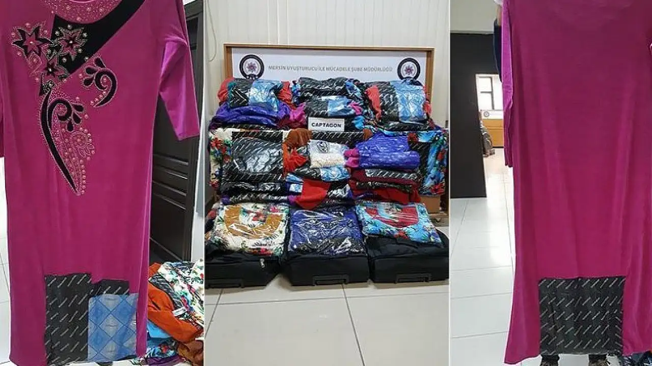 Valizleri açan güvenlik güçleri, değişik ebat, renk ve cinste çok sayıda paketlenmiş kıyafetle karşılaştı. Kıyafetleri inceleyen ekipler, özel dikilmiş bölümlerde uyuşturucu hap bulunduğunu belirledi.