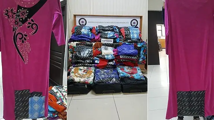 Mersin'de düzenlenen uyuşturucu operasyonunda, 6 valizde bulunan kıyafetlerin özel dikilen bölümlerine saklanmış 340 bin 800 uyuşturucu hap ele geçirildi.