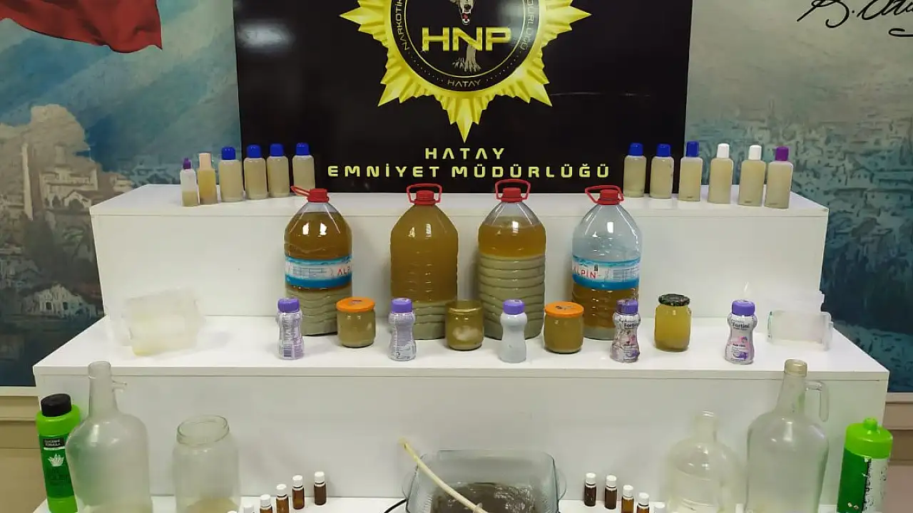 İl Emniyet Müdürlüğü ekipleri, Antakya'da bir evin uyuşturucu imalathanesine dönüştürüldüğünü tespit etti. Eve baskın yapan ekipler, aramada 22,7 kilogram sıvı metamfetamin, metamfetamin yapımında kullanılan aseton, elektrikli ocak, anestezik ilaç şişesi ile cam ve plastik kaplar ele geçirdi. Olay ile ilgili E.D. , D.D., E.B ve H.A. yakalanıp, gözaltına alındı.