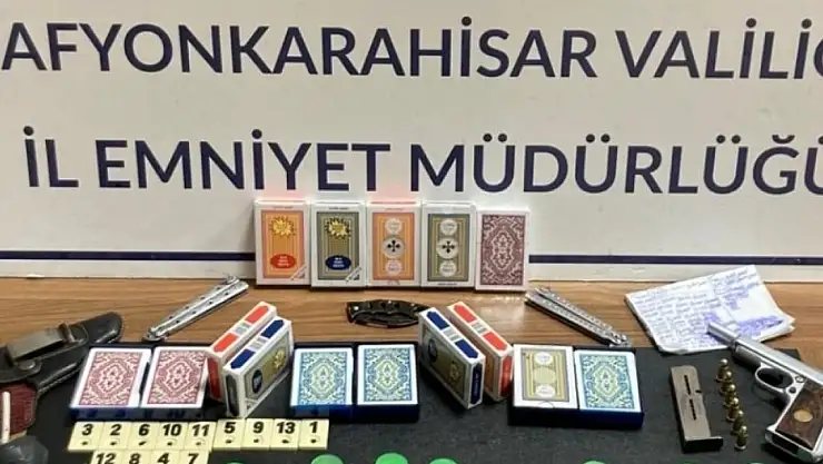 Afyonkarahisar'da polis tarafından kumar oynatılan bir eve polis tarafından yapılan baskında 10 kişi suçüstü yapılırken, yakalanan şahısların yapılan GBT sorgulamasında ise birinin uyuşturucu kaçakçılığından 8 yıl 4 ay hapis cezası ile arandığı belirlendi.