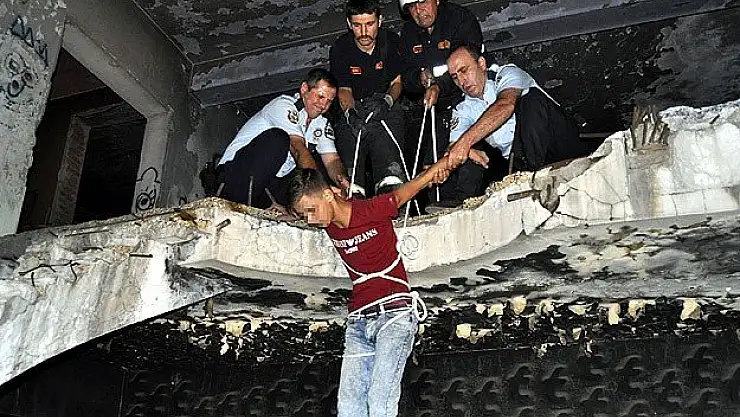 Uyuşturucu kullandıkları eski binada mahsur kaldılar