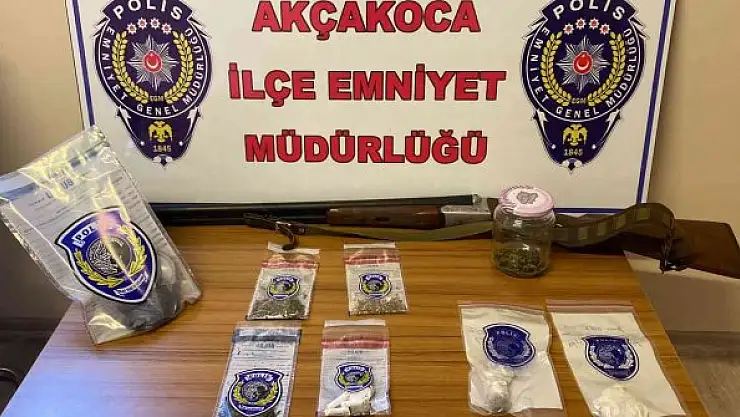 Düzce'nin Akçakoca ilçesinde polis ekipleri 4 farklı adreste uyuşturucu alemi yapıldığı istihbaratına ulaştı. Yapılan çalışmaların ardından belirlenen 4 farklı adrese eş zamanlı baskın yapıldı. E.D, O.D, M.D, M.G'ye ait evlere yapılan şok baskınlarda 1 adet çift kırma ruhsatsız av tüfeği, 35.9 gram esrar, esrar tohumu, ile uyuşturucu içiminde kullanılan aparatlar ele geçirildi.