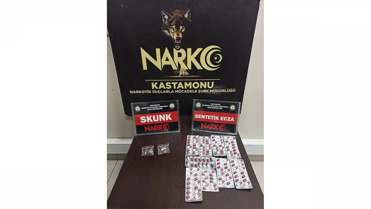 Edinilen bilgiye göre, Kastamonu İl Emniyet Müdürlüğü Narkotik Suçlarla Mücadele Şube Müdürlüğü ekipleri tarafından uyuşturucu ile mücadele çalışmaları neticesinde şüphe üzerine bir şahsın üstünde aracında arama yapıldı. Yapılan aramada 1.36 gram skunk ve 122 adet sentetik ecza hapı ele geçirildi. Olayla ilgili şüpheli şahıs gözaltına alınarak adliyeye sevk edildi.