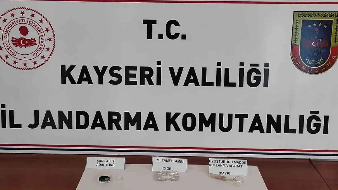 Kayseri'de jandarma ekipleri tarafından yapılan çalışmalarda bir şahıstan şarj aletine saklanmış 5 gram uyuşturucu madde ve 1 adet uyuşturucu madde kullanma aparatı ele geçirildi.