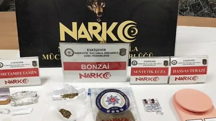 Edinilen bilgilere göre, Narkotik Suçlarla Mücadele Şube Müdürlüğü ekipleri torbacı olarak tabir edilen sokak satıcılarının yakalanmasına yönelik olarak çalışma gerçekleştirdi. Odunpazarı ilçesinde yakalanan 2 şahsın üzerinde yapılan aramalarda 79,56 gram bonzai, 6,88 gram metamfetamin, 6 adet sentetik ecza hapı, 1 adet hassas terazi ele geçirildi.