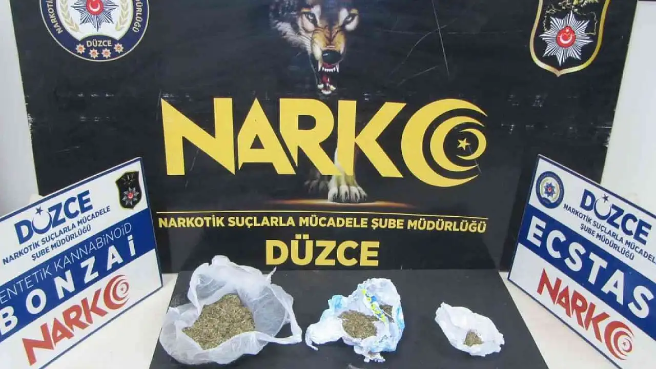 Emniyet Müdürlüğü Narkotik Suçlarla Mücadele Şube Müdürlüğü ekiplerince 3 kişinin Düzce'den uyuşturucu sevkiyatı yaptığı istihbaratına ulaştı. Bunun üzerine Cumhuriyet Başsavcılığı koordinesinde yürütülen çalışmada Düzce'ye başka illerden uyuşturucu madde sevkiyatı yaptığı tespit edilen şüpheli 3 şahısın yakalanması için ekipler operasyon yaptı. Yakalanan şahısların üzerlerinde yapılan aramalarda; 3 parça halinde toplam 85 gram sentetik kannabinoid maddesi ve 4 adet ecstasy maddesi ele geçirildi. Şahıslar gözaltına alınarak Emniyet Müdürlüğüne götürüldü. Burada şüpheli 1 şahıs hakkında uyuşturucu madde ticareti yapmak suçundan, 2 şahıs hakkında ise uyuşturucu madde bulundurmak ve kullanmak suçundan mahkemeye sevk edildi.