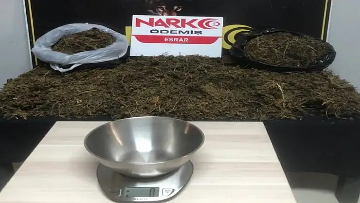 İzmir'in Ödemiş ilçesinde uyuşturucu ticareti yaptığı belirlenen bir kişi polis ekipleri tarafından düzenlenen operasyonla yakalandı. Şüphelinin ikametinde yapılan aramada 2 kilogramın üzerinde esrar maddesi ve bir hassas terazi ele geçirildi.