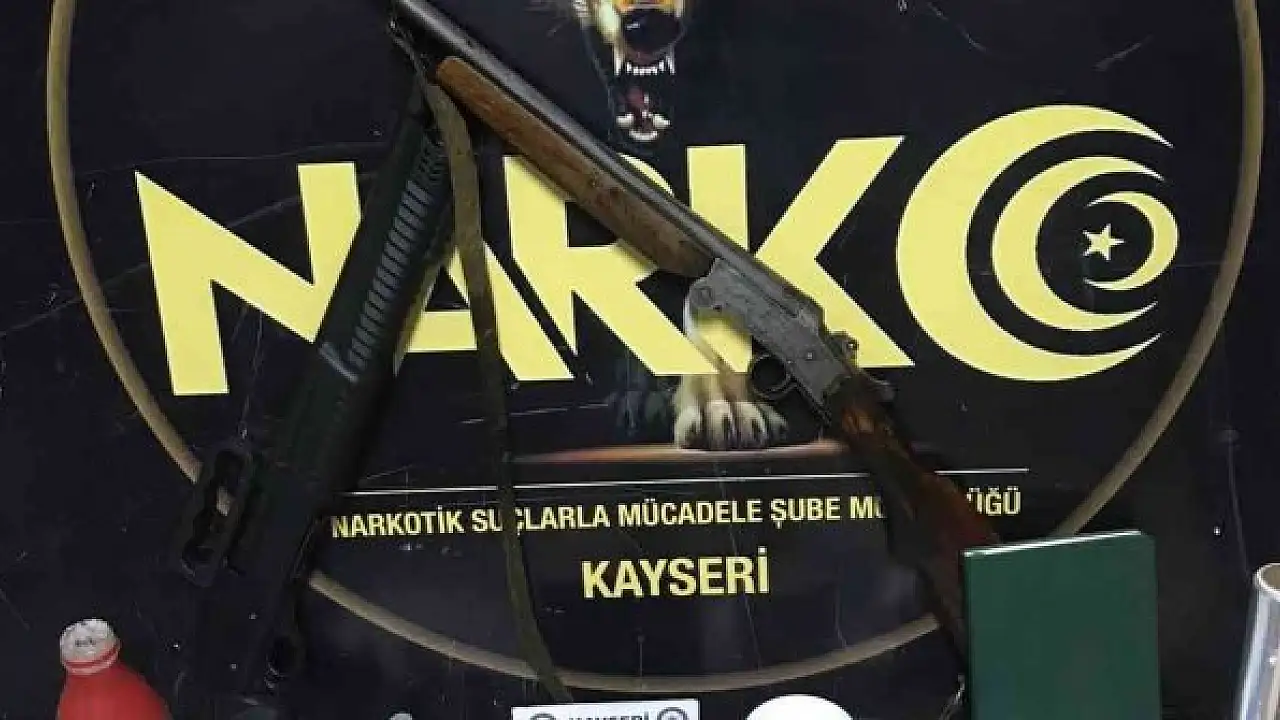 Kayseri İl Emniyet Müdürlüğü Narkotik Şube Müdürlüğü ve İstihbarat Şube Müdürlüğü tarafından yapılan ortak çalışmalarda U.K. isimli şahsın uyuşturucu madde satışı yaptığı bilgisine ulaşıldı. Ekipler tarafından şahsın ikametinde yapılan aramalarda 680 gram uyuşturucu madde, 1 adet hassas terazi, 2 adet ruhsatsız av tüfeği, 12 adet kartuş, 1 adet ruhsatsız tabanca, 12 adet fişek ve 1 adet uyuşturucu paketlemek için kullanılan folyo bulundu.