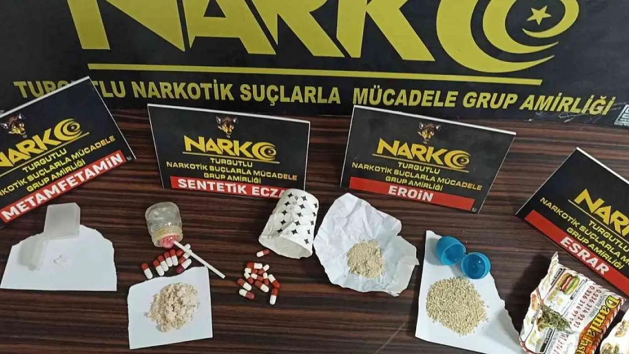 Manisa'nın Turgutlu ilçesinde narkotik ekiplerince bir eve yapılan baskında çok sayıda uyuşturucu madde ele geçirildi.