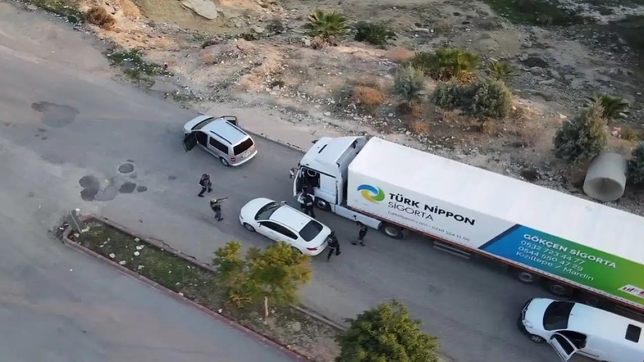 İl Emniyet Müdürlüğünden yapılan açıklamaya göre, doğu illerinden Mersin'e tırla uyuşturucu madde getirileceği bilgisine ulaşan narkotik ekipleri, olayla ilgili çalışma başlattı. Plakası belirlenen tırı teknik ve fiziki takibe alan ekipler, şehre girişi sırasında dron destekli operasyon düzenledi.