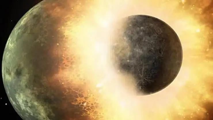 Bu çarpışmanın yaklaşık 4,5 milyar yıl önce yaşandığı ve iki gezegenin çekirdeğinin kaynaştığı düşünülüyor.