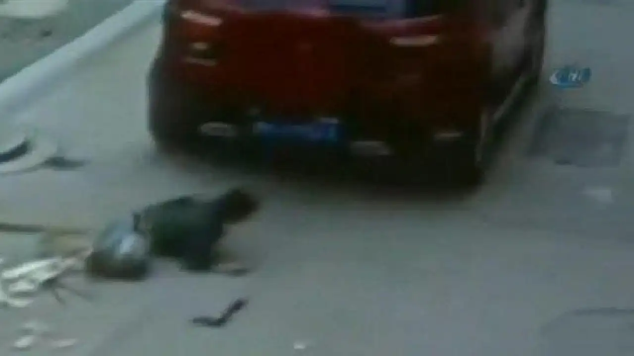 Çin'de bir araç sokak ortasında oyun oynayan küçük bir çocuğu fark etmeyerek üzerinden geçti