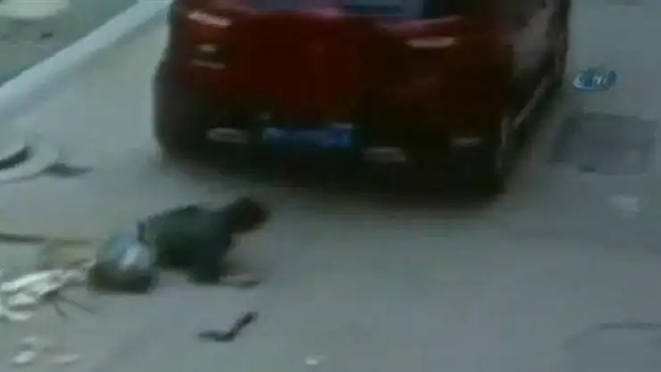 Güvenlik kamerası tarafından kaydedilen görüntüde küçük çocuğun sokakta oyun oynadığı görüldü. Bu sırada dikkatsiz bir sürücü sokağa girdi ve yerde oyun oynayan çocuğu fark etmeden üzerinden geçti. Olay sonrası küçük çocuğun sadece sırtının aracın şasesine çarptığı ve bu yüzden canının acıdığı görüldü. Yetkililer kazadan burnu bile kanamadan kurtulan çocuğun boyunun kısa olması ve aracın şasesinin yüksek olmasının büyük bir felaketi önlediğini ifade etti. Kazanın ardından araç sürücüsü ise polise verdiği ifadede olay sırasında çocuğu fark etmediğini söyledi.