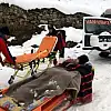 Burada yapılan ilk müdahalenin ardından mahalle sakinlerinin yardımıyla hazırlanan sedyeye konulan hasta, kar motorunun bulunduğu yere taşındı.