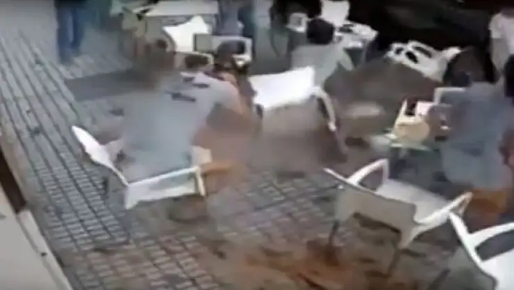 İspanya'nın Ekstremadura bölgesinde bir kafenin kaldırım kısmına kurulan masalarında oturan turist kafilesi, talihsiz bir kaza yaşadı.