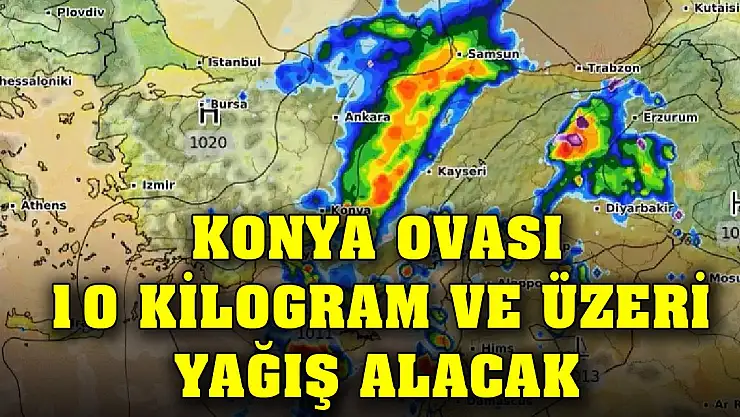 "Hüyük, Beyşehir, Tuzlukçu, Çeltik, Yunak, Çumra, Akören, Hadim, Ahırlı, Yalıhüyük, Bozkır, Karapınar, Emirgazi, Ereğli, Halkapınar ve Şehir merkezi 10 kg üstü. Konya ovası geneli 10 kg üstü olacak şekilde yağışlar beklenmektedir"